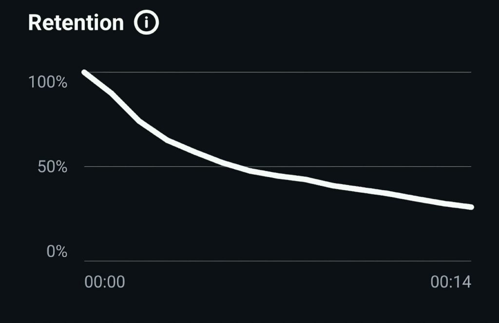 • Retention Graph – this graph shows you when people scrolled away from your video. Ideally, you want a smooth retention graph (like the one below). If you notice a steep drop at any point, that shows a weak spot in your reel when people leave.