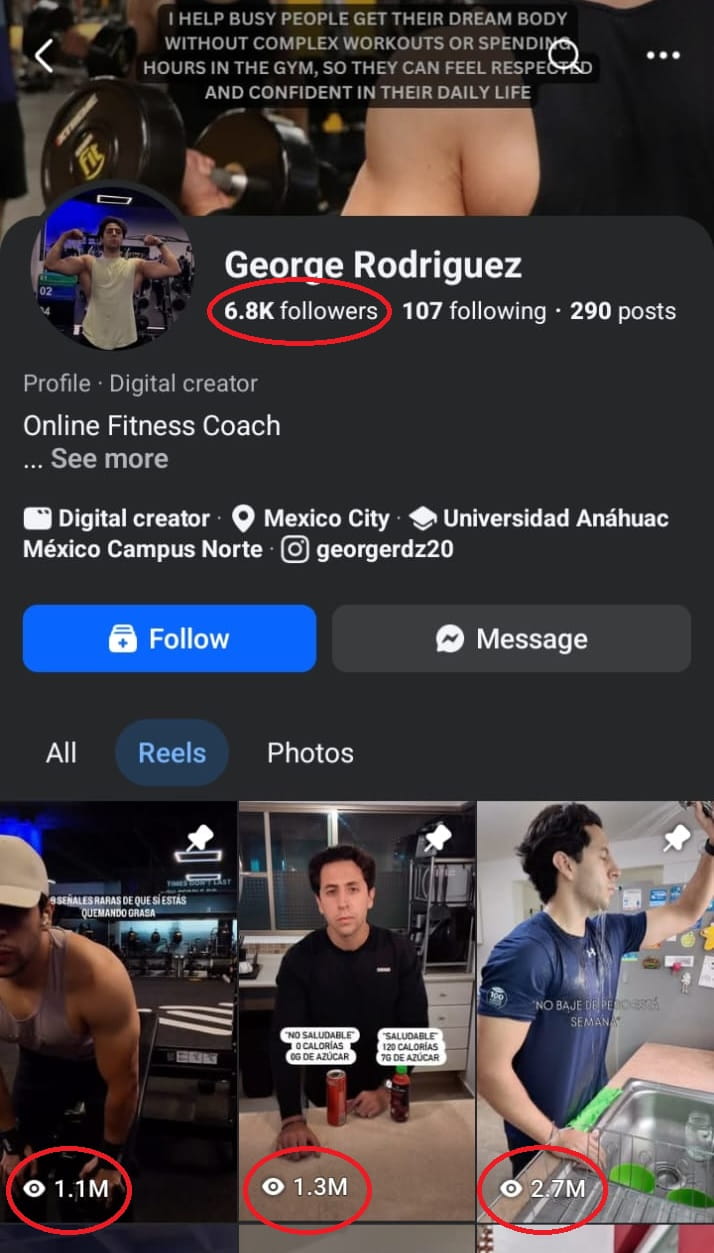 On Facebook (George Rodriguez), where it all started, his content continues to perform at a high level: