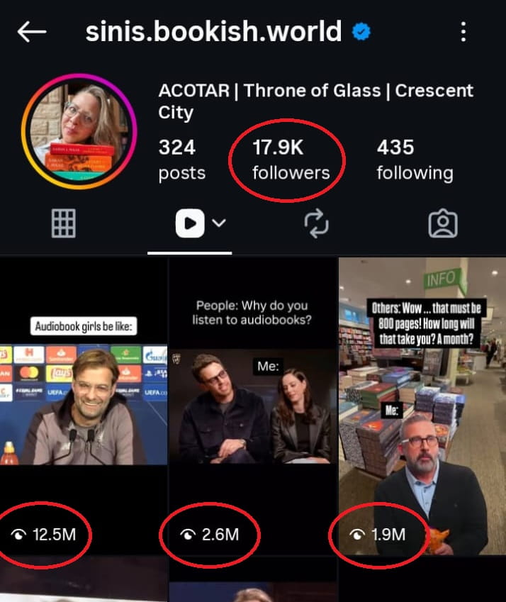 Sinika: Yeah. And that’s super cool because when I look to other accounts with this amount of followers, they have kind of like 500 views or 1,000 views. And I think some reels I post get about 700, but almost every reel has 4,000, 2,000. And now these two viral reels.